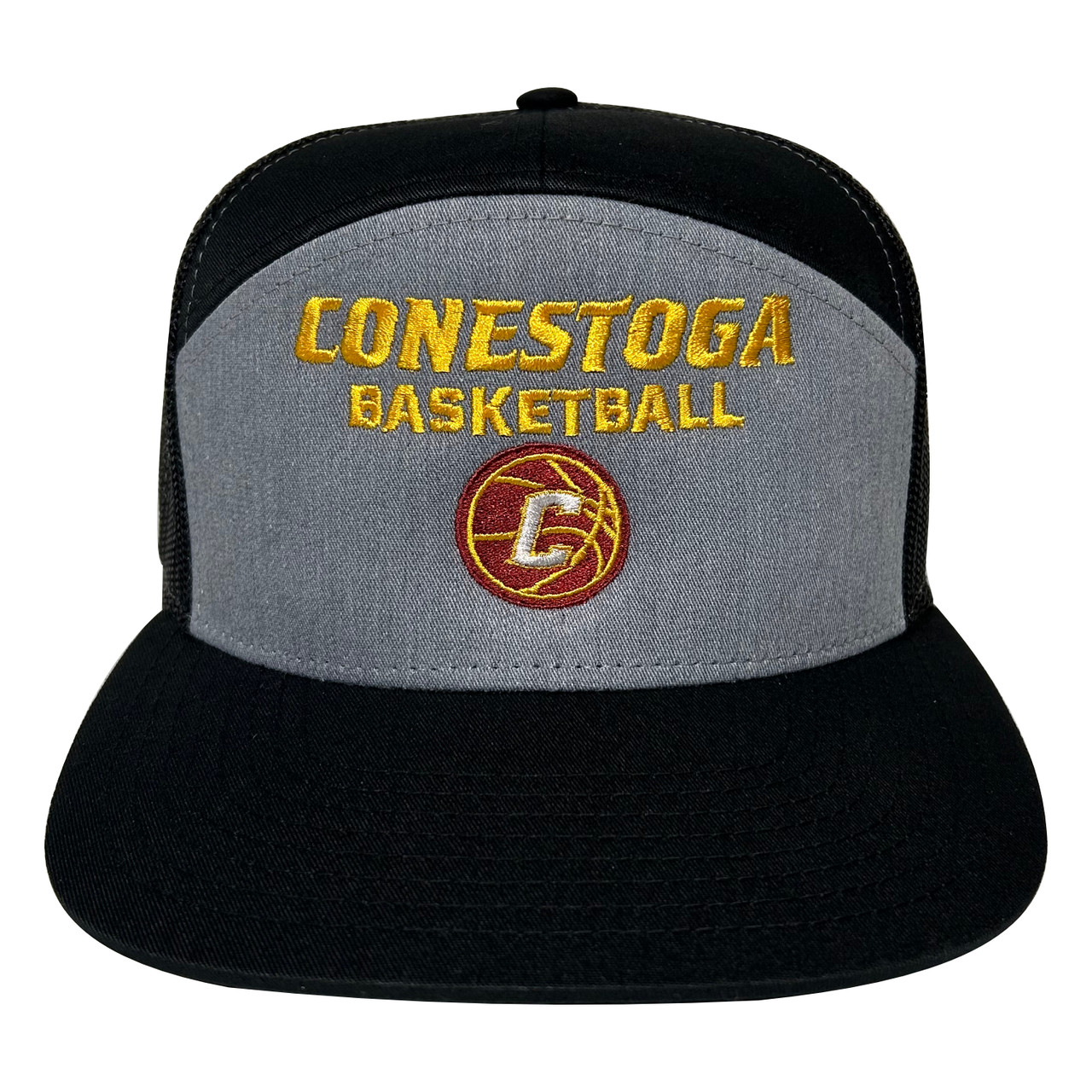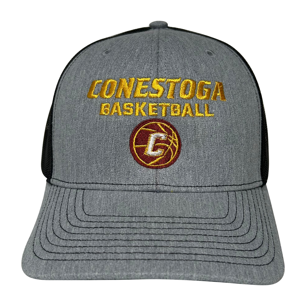 • Trucker Style with Conestoga basketball embroidered centered on a heather grey front with a black snapback mesh