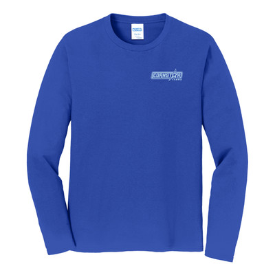 Comfort Colors tee with cream colored print on back and left chest red and cream print