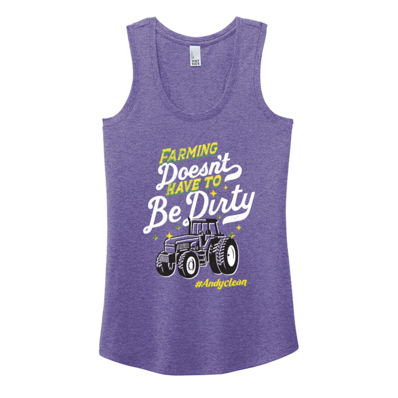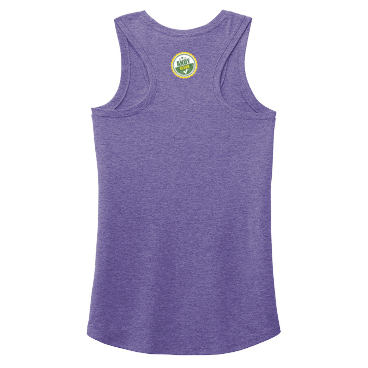 Full color print on heather purple tee with Andy Clean logo on top center back