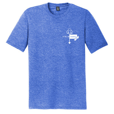 White Print Left Chest Print on a Unisex Blue Frost Tee.