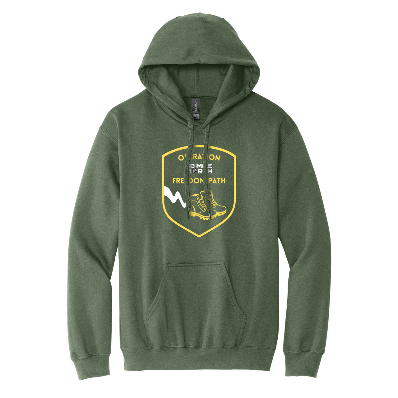 Gildan Soft Style Military Green Hoodie with White and Yellow Print
