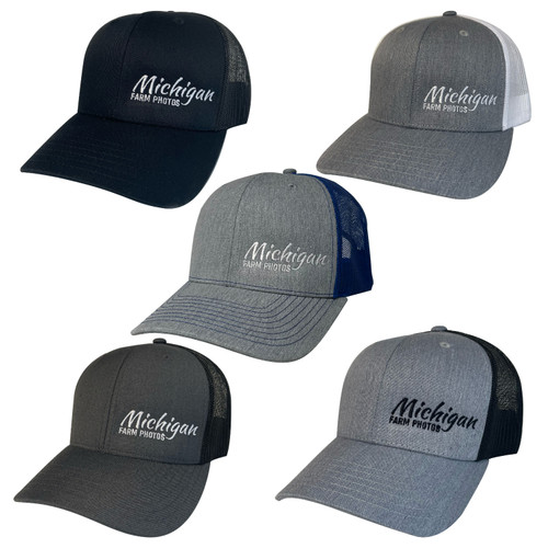 Structured Trucker Style Hat with Front left panel embroidered logo and snapback closure