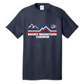 Navy Tee with red, white and blue Rocky Mountain Farmer Logo