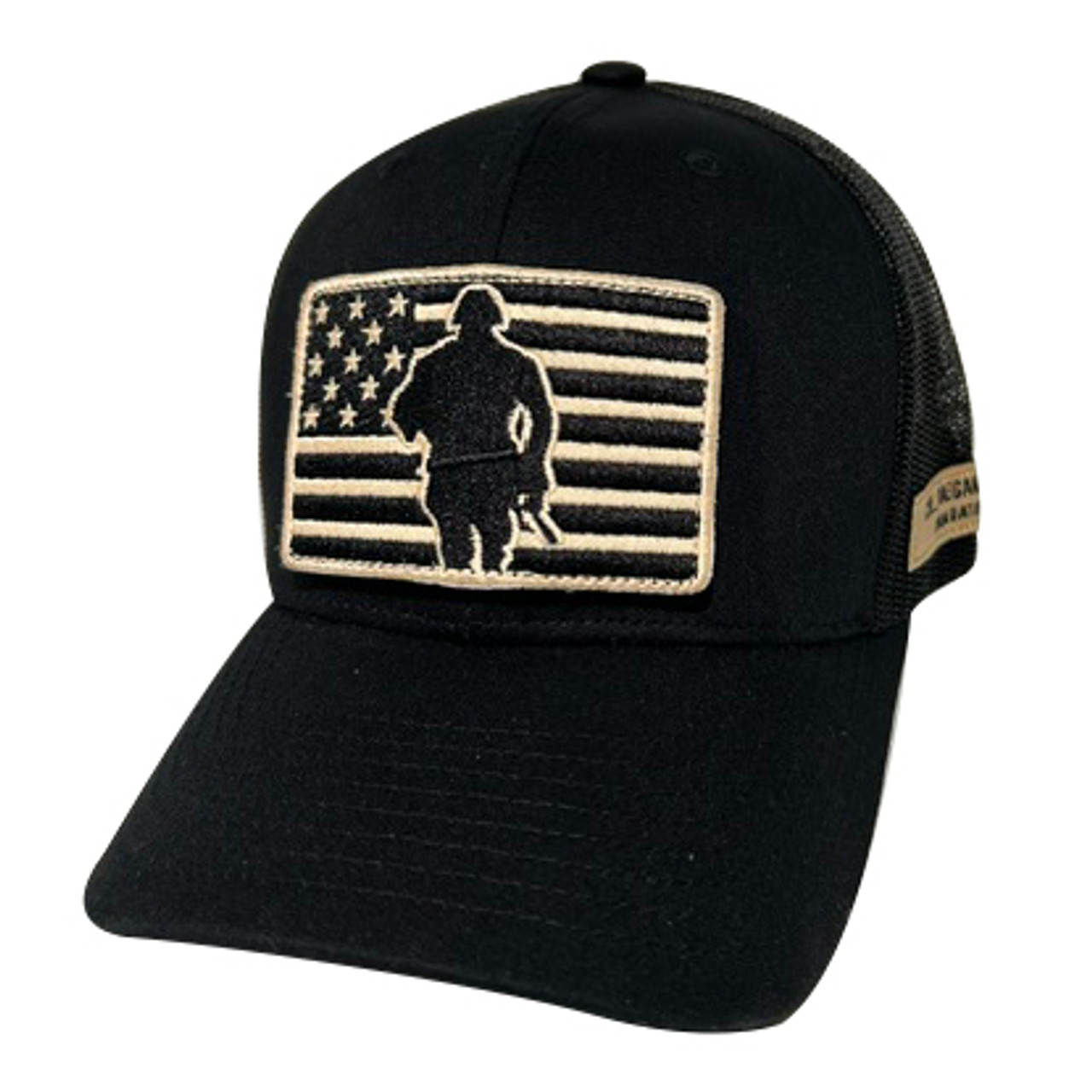 All Black STRUCTURED Trucker style hat with "Dae Way" hook & loop patch base on front. Cpl. Daegan Page foundation woven label sewn on left side of hat.