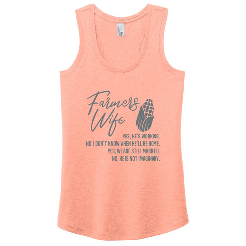 Full chest Print: "Farmer's Wife: Yes, He's Working. No, I don't know when he'll be home. Yes, we are still married. No, he is not imaginary."